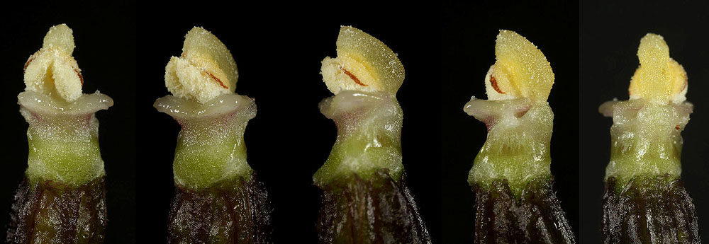 | Variabilität: Selten kommen deutlich gegliederte Lippen vor, das Epichil klappt dann nach unten. (Abb. 22 und 23) |